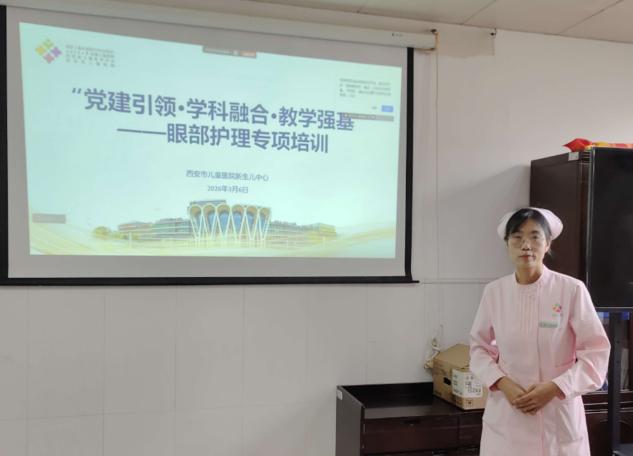 培训伊始,眼科护理专科护士围绕新生儿眼部解剖特征、常见眼部疾病识别、眼部感染防控要点、高危新生儿眼部护理特异需求、应急处置流程等核心内容展开系统授课。授课过程中,专家紧密结合新生儿重症监护室、新生儿外科的临床场景,针对不同科室患儿的病情特点,差异化解析护理重点与难点,强调多学科协作下的信息共享与联动处置原则。理论讲解层层递进,专业、精准,既兼具深度与广度,又紧密贴合临床一线工作实际,为参训人员搭建了清晰、系统的知识框架。