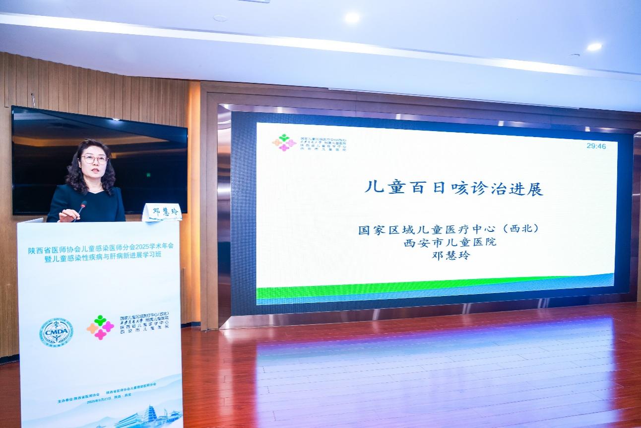 我院邓慧玲副院长代表承办单位致辞,对西安市儿童医院的发展概况做了简要介绍,回顾了感染科的历史及近年来的发展,表示医院将继续为儿科医学发展搭建高质量学术平台,助力区域儿童健康事业进步。
